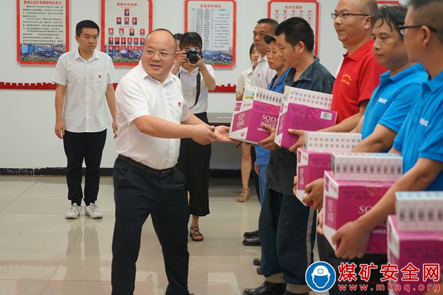 鄭偉一行在魯班山北礦黨建活動室向北礦職工發放了防暑降溫藥品和清涼飲品,并對堅守在一線的職工表示了親切的慰問。同時叮囑大家在工作中要做好防暑降溫工作,避免中署,注意身體、注意安全;并鼓勵北礦干部職工一定要堅定信心,共同努力扭轉礦井當前的被動局面,團結一心開創北礦美好未來。