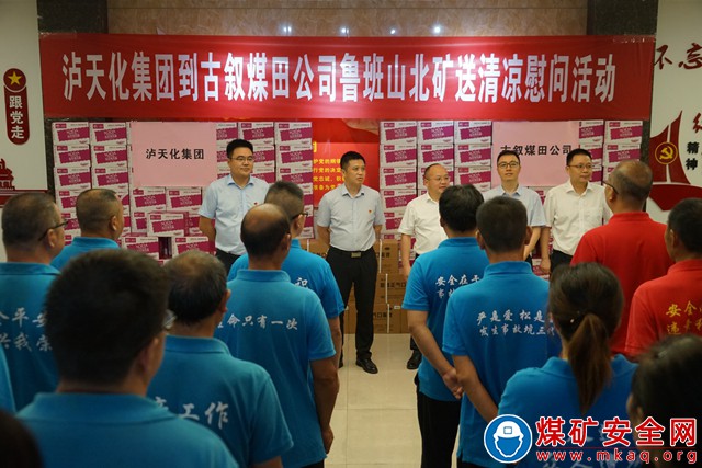 7月14日,瀘天化(集團)公司財務總監鄭偉、資本運營部副部長古盛等一行兩人,在古敘煤田公司黨委副書記、紀委書記、工會主席殷郊的陪同下到魯班山北礦開展“送清涼”慰問活動。